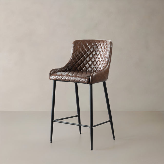 VICTOR Leather Bar Stool, Brown, 75cm